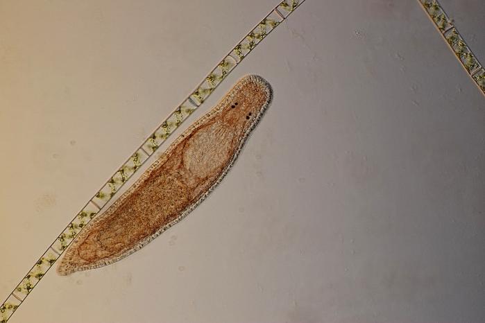 A flatworm next to algae filaments